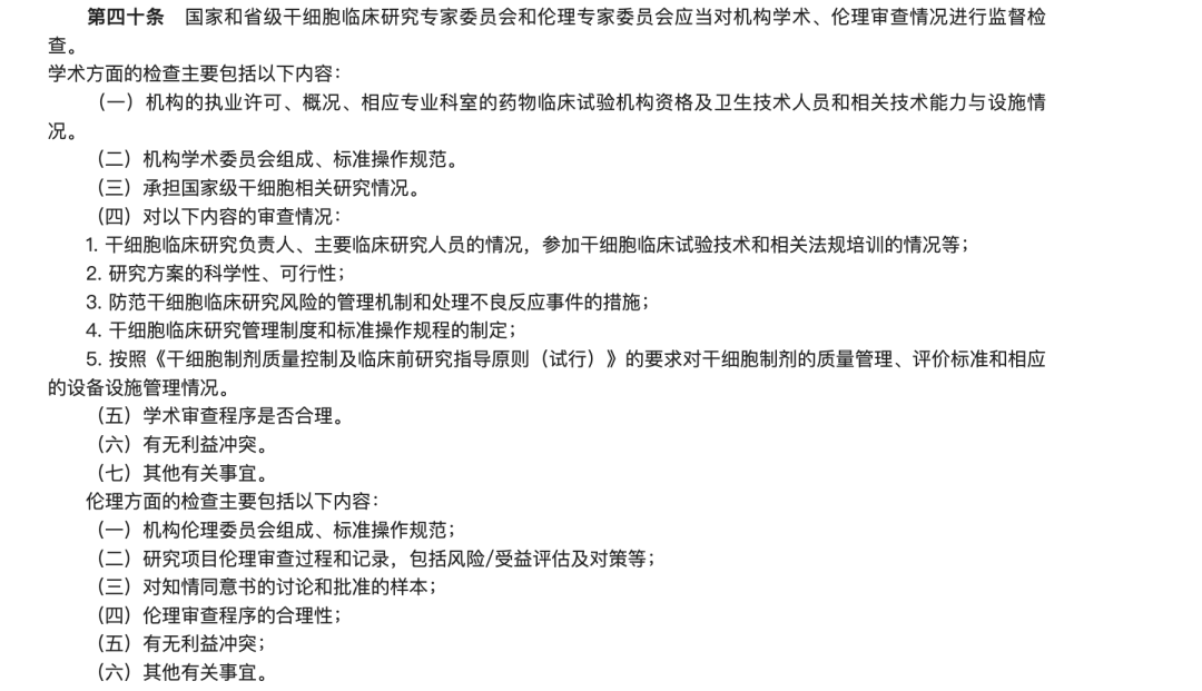 對于干細胞備案,要求干細胞臨床研究符合《藥物臨床試驗質量管理規范》。干細胞制劑符合《干細胞制劑質量控制及臨床前研究指導原則(試行)》。干細胞制劑的制備符合《藥品生產質量管理規范》(GMP)的基本原則和相關要求。