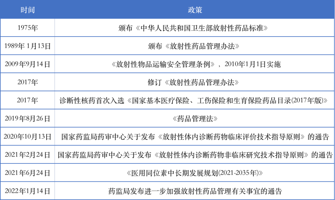 自1974年將核藥納入藥品管理以來,我國陸續出臺了多個政策文件,促進核藥規范化、快速發展。